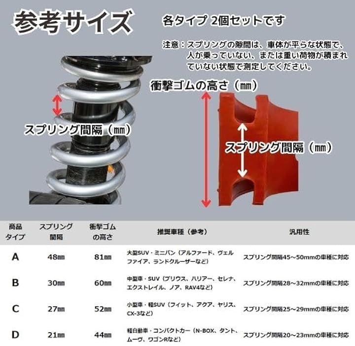サスペンション用スプリングゴムスペーサー 衝撃吸収とショックアブソーバー保護に取付簡単なバンパークッションタイプ サイズA~Dの4種展開で幅広い車種に対応