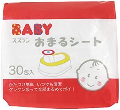 「スズラン ベビー おまるシート 30枚」は、おまるの中桶にかぶせるだけで、簡単に装着ができるおまるシートです。高分子ポリマーシートを使用しており、しっかりおしっこを吸収します。おまるがいつもきれいに保てる使い捨てタイプ。まるめて捨てるだけなので、後片付けも簡単です。使用方法・袋を広げておまるの中桶にかぶせます。・しっかりと吸収した所で袋を中桶からはずします。・端をしばって丸めます。・後は簡単に捨てるだけ。使用上の注意・お願い・使用後は、すぐに処理してください。・汚れた部分を内側にして丸めて、不衛生にならないように処理してください。・トレイにおまるシートを捨てないでください。・使用後のおまるシートの廃棄方法は、お住まいの地域