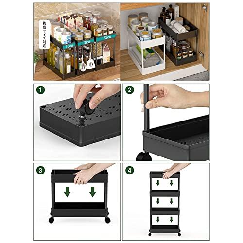 ★【商品仕様】使用サイズ:『4段式』38*13*85cm/『3段式』40*13*61cm 大容量:500mlのペットボトルの収納:1段につき、7?10本収納可能です。耐荷重:約20kg 素材はプラスチックで、軽くて移動しやすいのがメリットですが、安定性に欠けるのがデメリットなので、安定性を高めるために洗濯洗剤などの重いものを下の層に置くことをおすすめします。ニーズによりバスケットを減らして、段数を自由に決めて、一段?四段まで使えます。 高級な材質は採用なので、防錆性、耐久性、安定性が高いです。 ★【移動便利・頑丈】4つのキャスター付きなので360°自由に回転し、床を傷つけることなく手軽にそして静かに動かすことができます。平らでない表面でもぐらぐら揺れませんので安心に使えます。キャスターにはブレーキが付いています。安定性がより高いです。 ★【どんな場面でも活躍】細身設計で部屋の隙間を活用できます、スペースを節約し充分利用します。調味料、洗剤、バスルーム用品を楽に収納可能です。キッチン、コンロ横、洗面所、美容室などの隙間に適用。洗面台と壁の間、冷蔵庫横、玄関などでの使用に最適です。狭い人や空間を有効利用したい人はぜひお試してください。 ★【お手入れ・組立簡単】メッシュバスケット型は排水しやすいです。湿気が多い場所でも安心。プラスチック製なので、お掃除も簡単です。シンプルで組み立てやすい、工具不要で、女性一人でも組み立てられます。日本語説明書に組み立て図解もあります。組立目安時間:(約)5~10分。 ★【安心的な品質保障】製品が傷あるや破損、欠落している場合は、ぜひ弊社にご連絡ください。★ご注意:部品不足の場合はすぐ再配送しておりますので、[アカウントサービス]‐[注文履歴]‐[出品者に連絡する] にてご連絡ください。