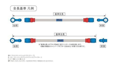 商品紹介ステンレスメッシュでカバーされたテフロンホースが膨張による液損をシャットアウト。2色のホースカラー、5種類のフィッティングタイプからお好みの一本をチョイスできます。ステンメッシュホースで抜群のブレーキタッチを実現。先端パーツが脱着できるので、取付が簡単,カスタムにも対応が容易です。抜群のブレーキタッチ。ホースエンドをかしめとすることで信頼性が格段に向上!*画像はイメージです。実際のKIT内容とは異なる場合がございます。ST:バンジョーストレート/20:バンジョー20°/SD:サイド20°/S1:バンジョーストレート(φ11)/S2:バンジョー20°(φ11)/CA:キャリパーアダプター/SF:ストレートフィッティング/20RH45:バンジョー20°右曲がり/20LH45:バンジョー20°左曲がりの略です内はアダプター込みの長さですリアホースはSWAGE-PROにて設定あり。使用上の注意右ブレーキ一本構成ABS車不可。