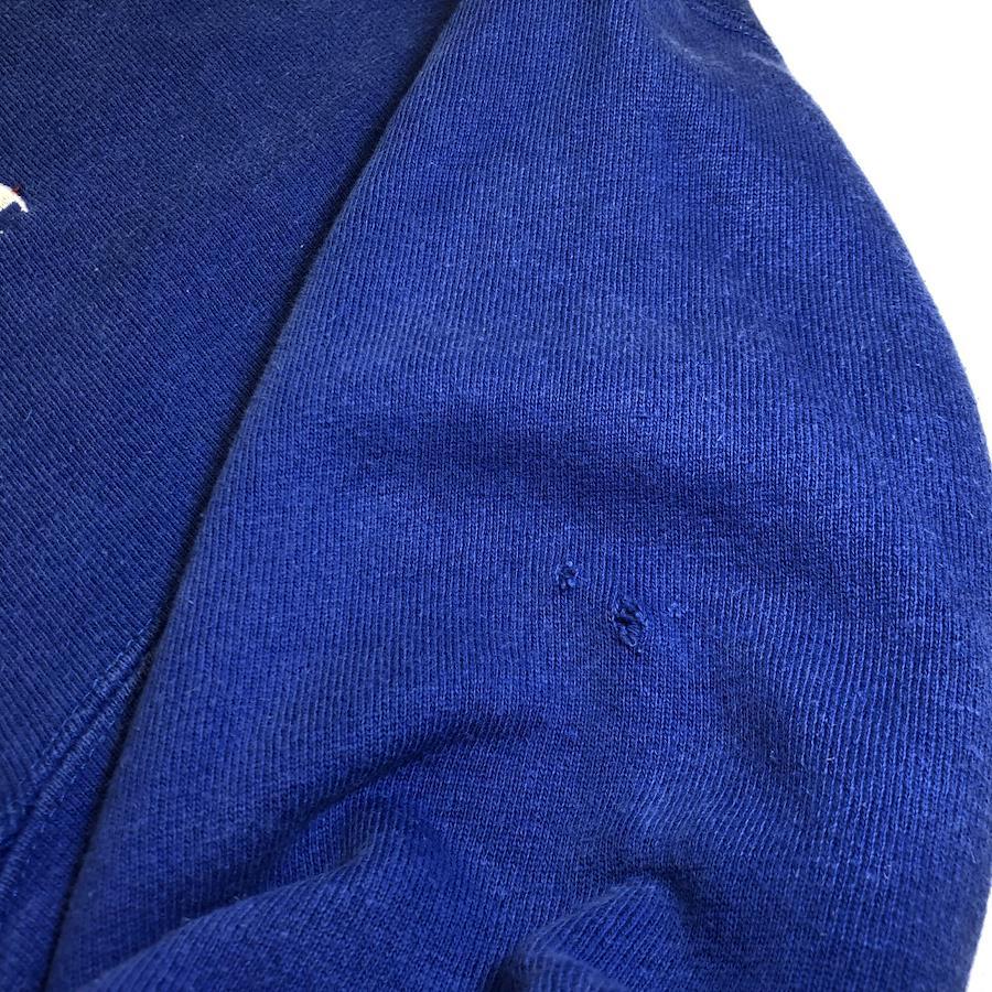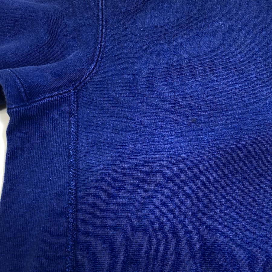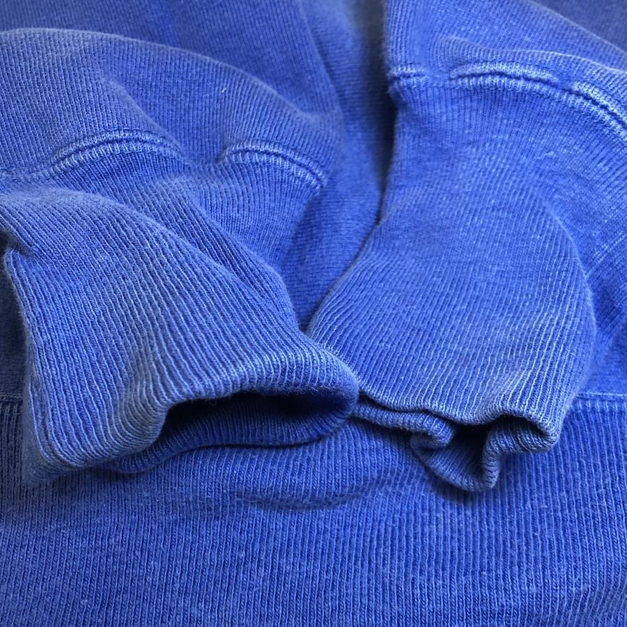 全体的に色褪せや毛羽立ち、袖リブのゆるみなど使用感が見られます。