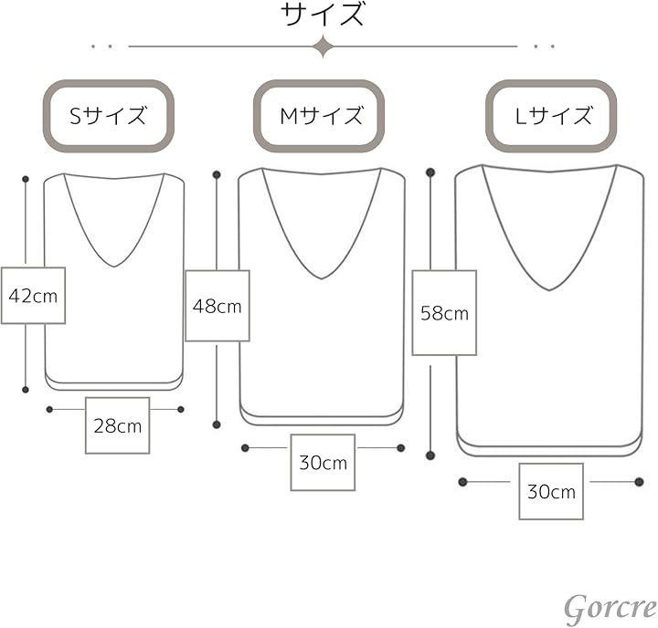 「サイズ」「Sサイズ:縦42cm 横28cm」「Mサイズ:縦48cm 横30cm」「Lサイズ:縦58cm 横30cm」「素材:綿100%」