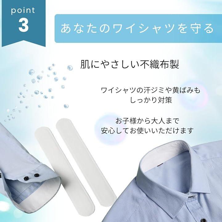 「あなたのワイシャツを守る」不織布製の汗取りパッドは、肌にやさしく、ワイシャツの汗ジミや汚れをしっかり対策。