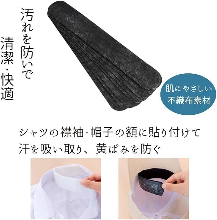 「汚れを防いで清潔快適」ワイシャツの襟や袖・帽子の額部分に貼り付けて汗を吸い取る便利なテープ。