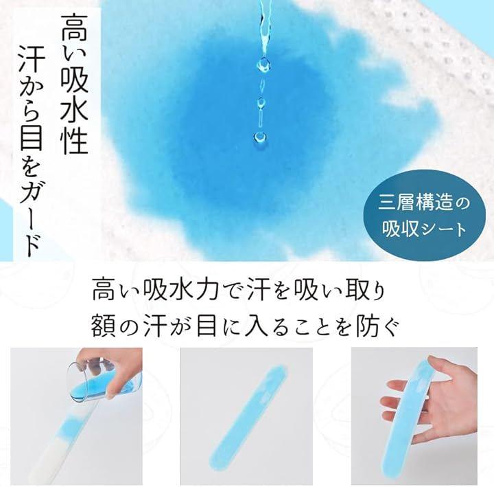 「高い吸水性で汗から目をガード」高い吸水力でしっかり汗を吸い取ります。