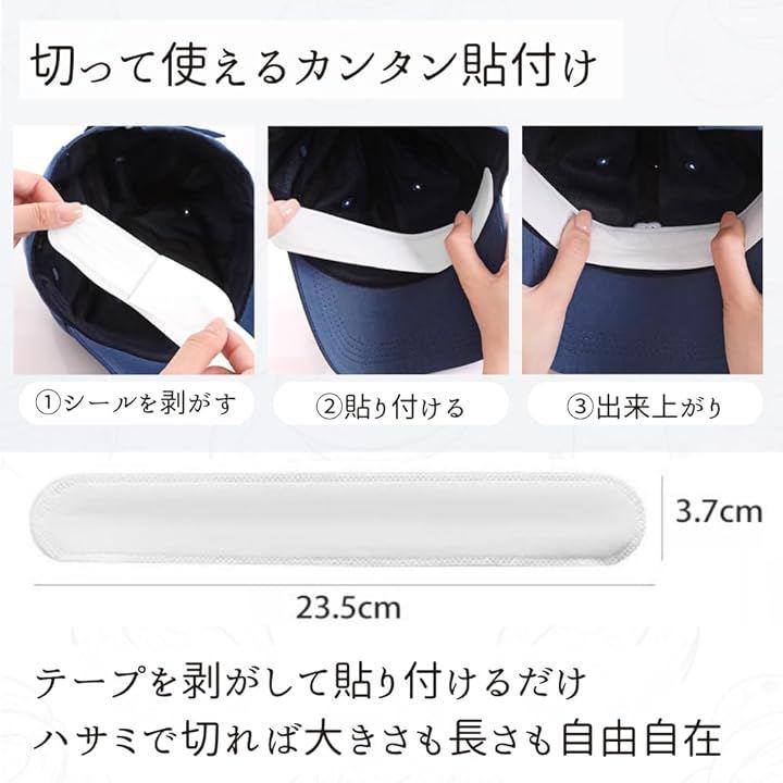 お子様の汗による黄ばみや汚れを防いだり、女性用帽子へのファンデーション付着も防ぐ便利なテープ。