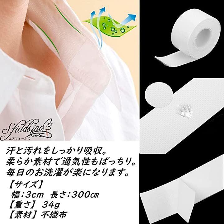 [S.fields.inc]汗テープ汗取りパッド汗取りシート襟袖帽子額ロール3mロングタイプ男女兼用
