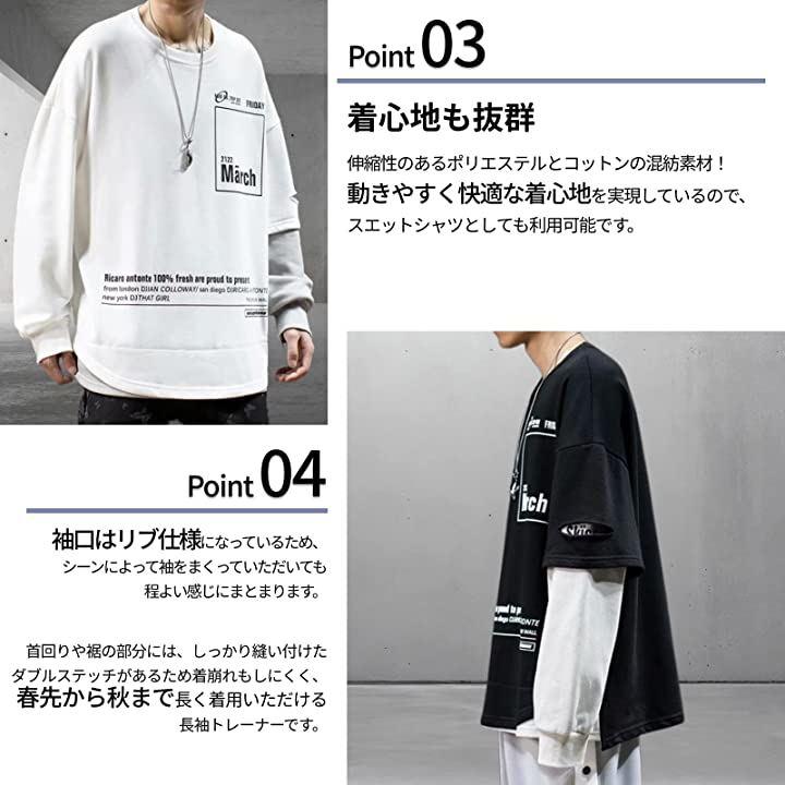 v「韓国風トレンドプルオーバー」 韓国風トレンドプルオーバーが登場。全面のプリントデザインだけでなく、右側の袖部分はフェイクレイヤードになっており、数ある他のメンズトレーナーとは違いこれ一枚でオシャレなコーデが完成します。