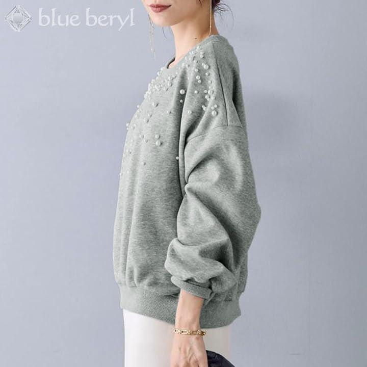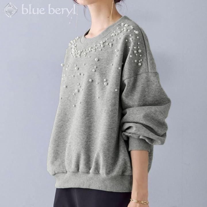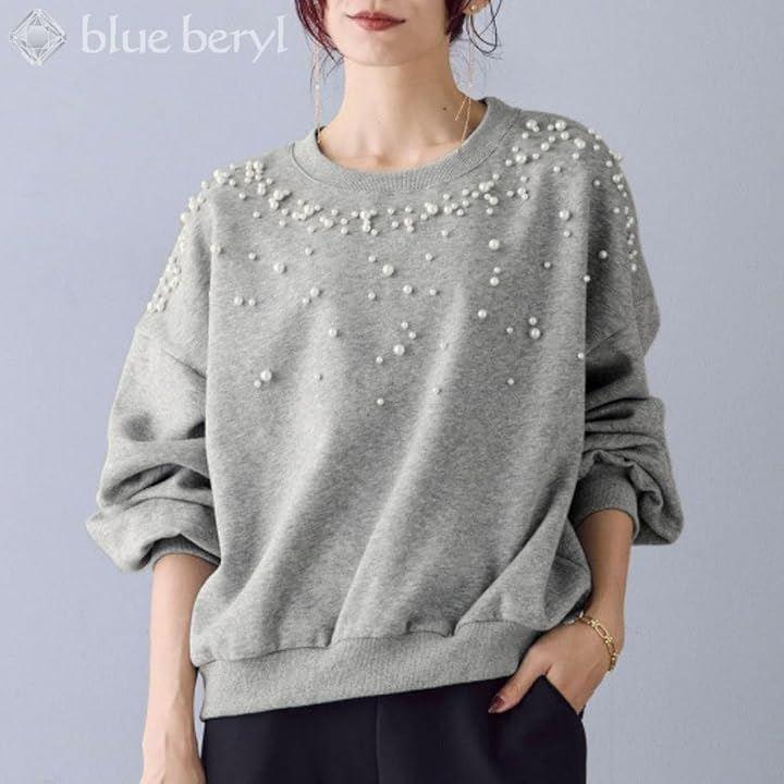 胸元に散らしたパールの飾りが、スタイルにフェミニンさとエレガントさをプラスして。