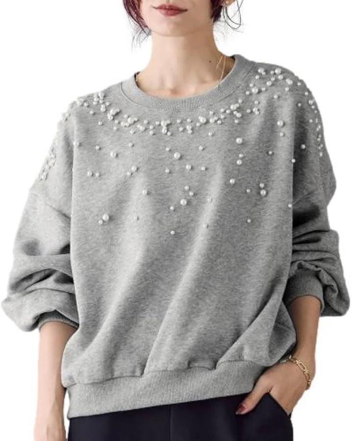 「カジュアルなのに洗練された大人の着こなし」 シンプルなスタイルながら、パールの装飾が華やかなアクセントになって。