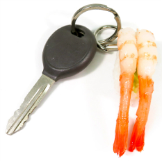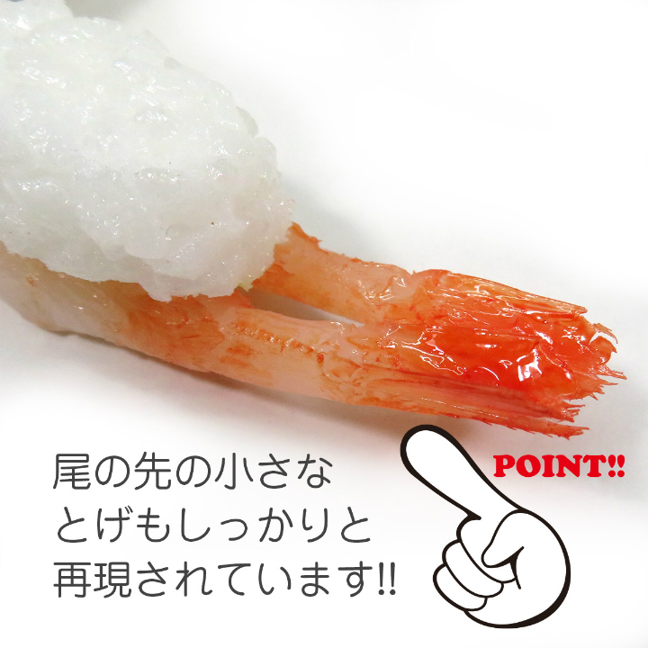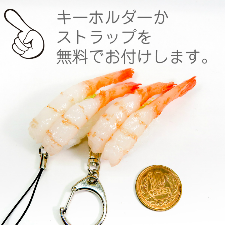 本物の甘エビにぎり寿司そっくりに作られた食品サンプルのアクセサリーです。