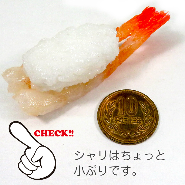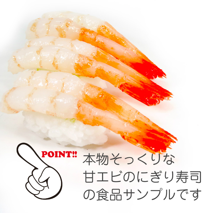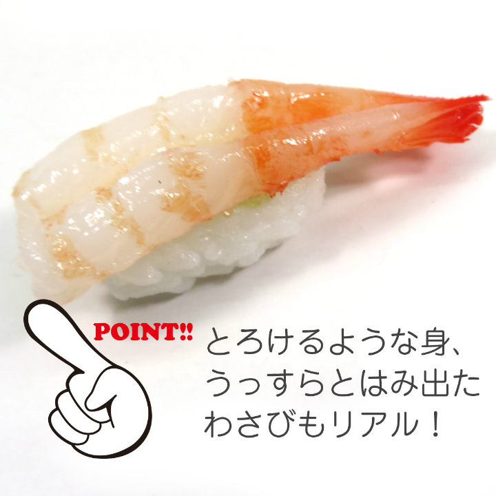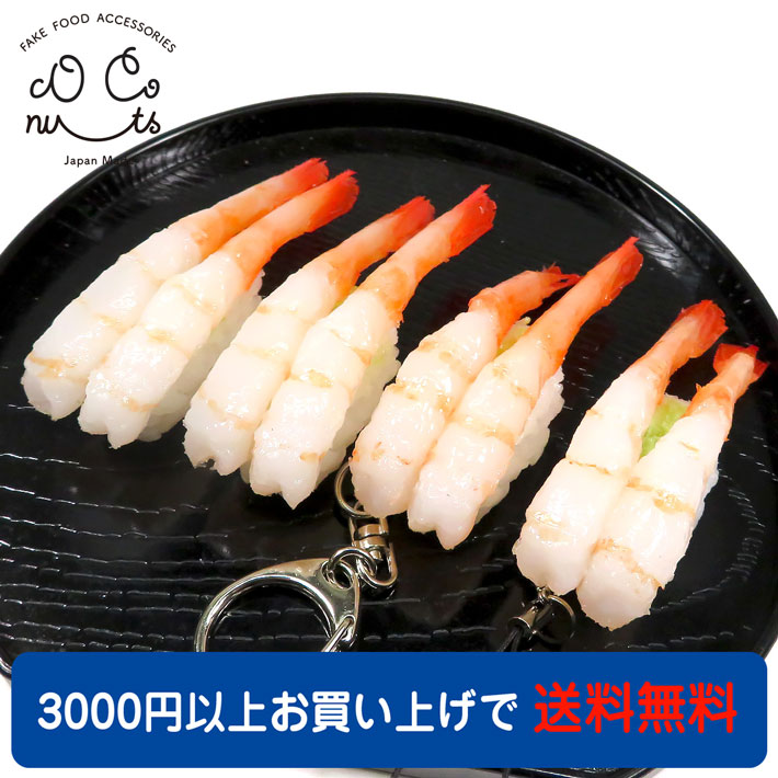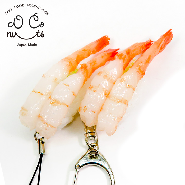 本物の甘エビにぎり寿司そっくりに作られた食品サンプルのアクセサリーです。