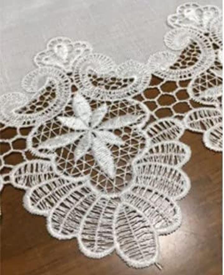 美しいヨーロピアンレースの縁取りを施したテーブルランナーです。