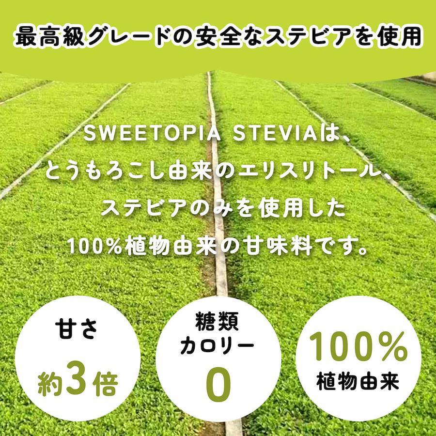 【おいしい甘さでカロリーゼロ】最高グレードのステビアを贅沢に使用し、苦みを抑えたすっきり味の植物由来の甘味料です。砂糖に似たまろやかな甘みのため少量で美味しく仕上がり、甘味料が初めての方、糖質を制限中の方でも違和感無くご使用いただけます。