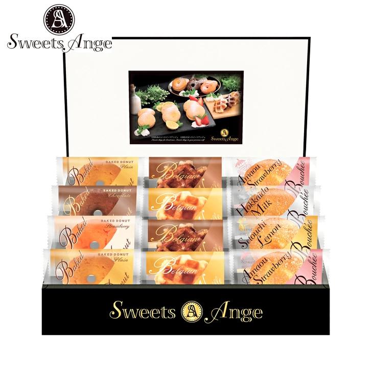 ベルギーワッフル(プレーン・ショコラ)、ベイクドドーナツ(プレーン)、ブッセ(あまおう苺)×各2、ベイクドドーナツ(ショコラ・ストロベリー)、ブッセ(北海道ミルク・瀬戸内レモン)×各1【卵、乳、小麦】