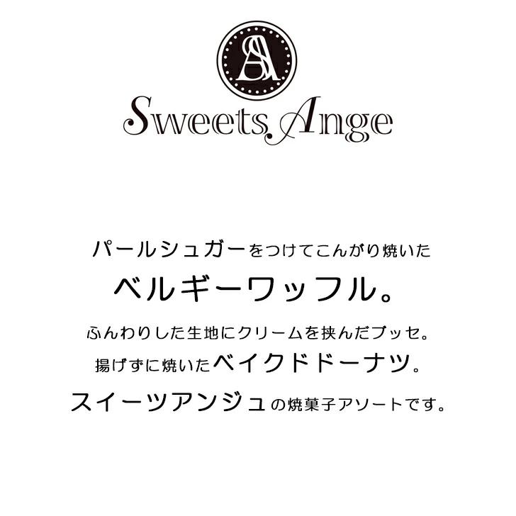 パールシュガーをつけてこんがり焼いたベルギーワッフル。ふんわりした生地にクリームを挟んだブッセ。揚げずに焼いたベイクドドーナツ。スイーツアンジュの焼菓子アソートです。
