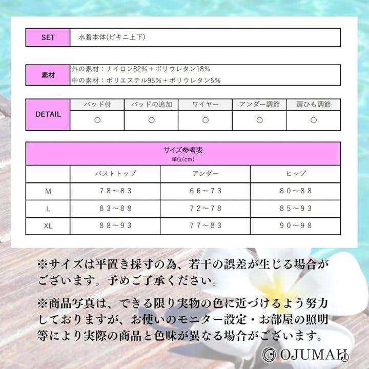 《セット内容》ビキニ上下2点セット《3つのサイズ展開》M(バスト78~83cm ヒップ80~88cm)、L(バスト83~88cm ヒップ85~93cm)、XL(バスト88~93cm ヒップ90~98cm)