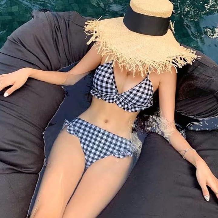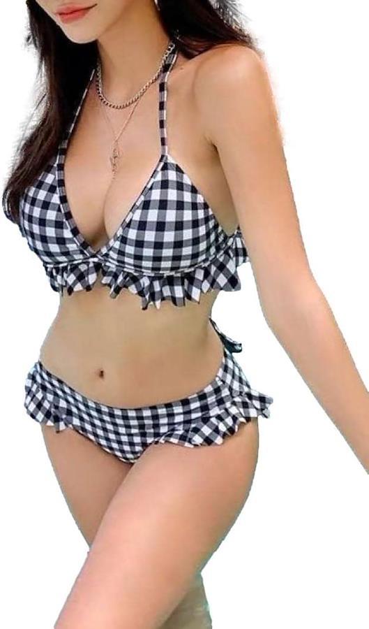 フリル使いがキュートで大人ガーリーなビキニタイプの水着です。