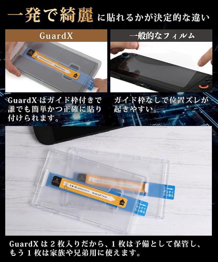 次世代ガイド枠「GuardX Frame」を採用し、誰でも簡単・正確に貼り付けが可能。