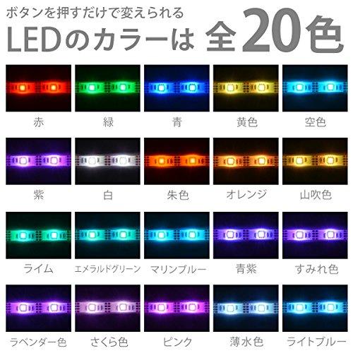■【ボタンを押すだけで全20色のカラーを切り替えられるLEDテープライト】 - - 本製品は、パソコン等のUSB端子にケーブルを接続するだけでLEDの明かりを灯す事ができる、簡単接続のLEDライトです。 ライトの「COLORボタン」を押すことでライトの色を全20色に切り替える事が出来ます。また「BRIGHTボタン」を押すことで、ライトの明るさ調整を5段階で行う事が可能です。 .