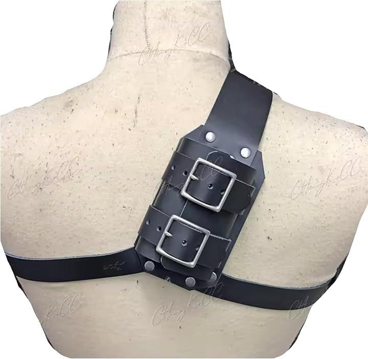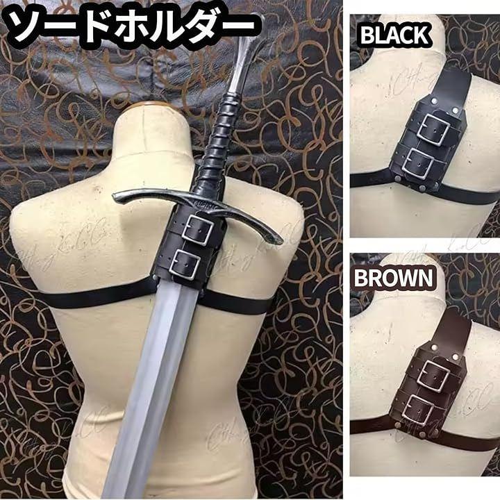 手になじみやすいフェイクレザーを使用したレザー調の剣ホルダーは、ソードショルダーとして肩掛けできるデザインです。