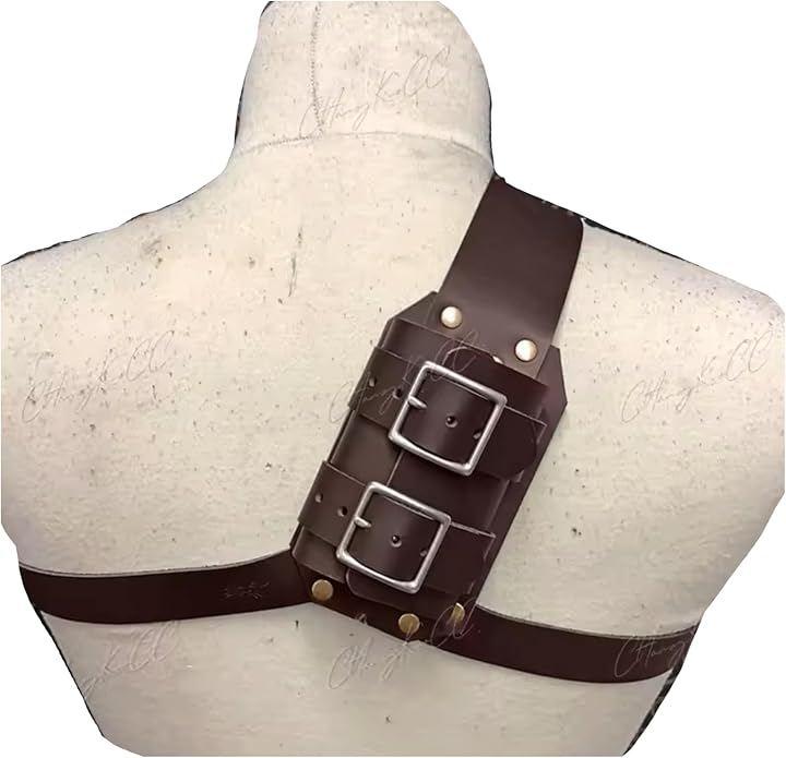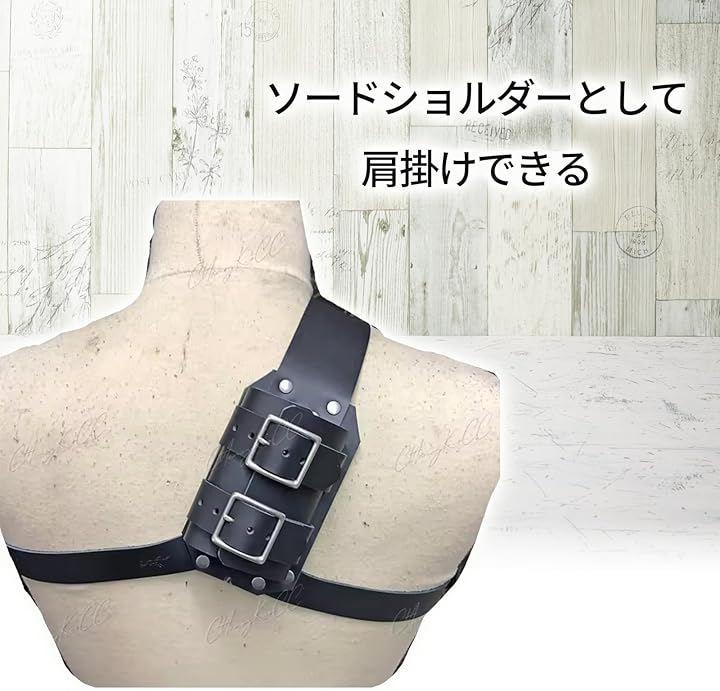 手になじみやすいフェイクレザーを使用したレザー調の剣ホルダーは、ソードショルダーとして肩掛けできるデザインです。
