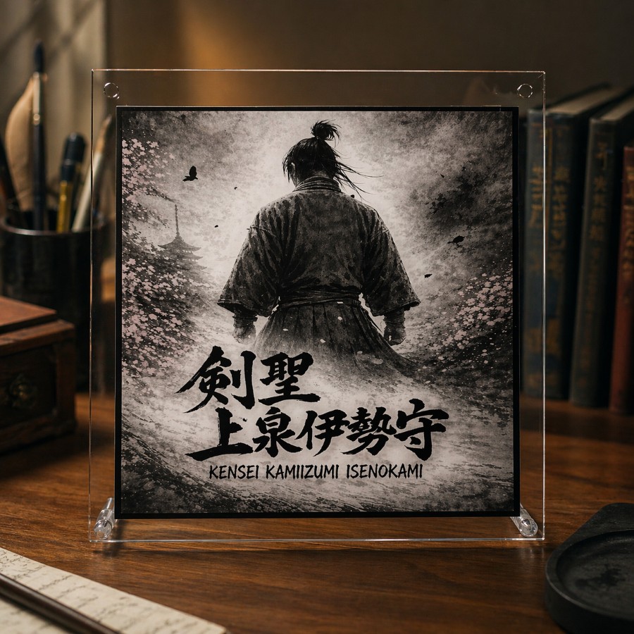 AIアートで表現した剣豪「上泉伊勢守(上泉信綱)」の卓上スタンドです。