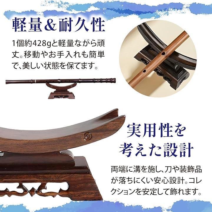 短剣や日本刀、模造刀など、コレクションを美しく飾り、その魅力を際立たせるとともに、シンプルで刀の美しさを引き立てるデザインになっています。