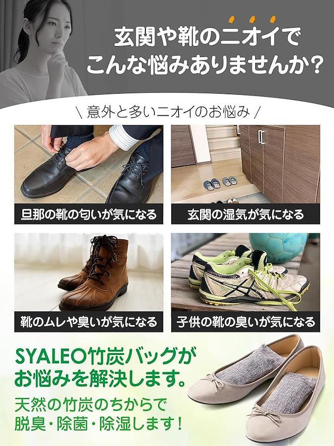 SYALEO Shoe Deodorizer, Dehumidifier, Charcoal, Bamboo Charcoal, Deodorizing, Entryway, Shoe Cabinet, Shoe Cabinet, Tested in Japan by an Odor Evaluator