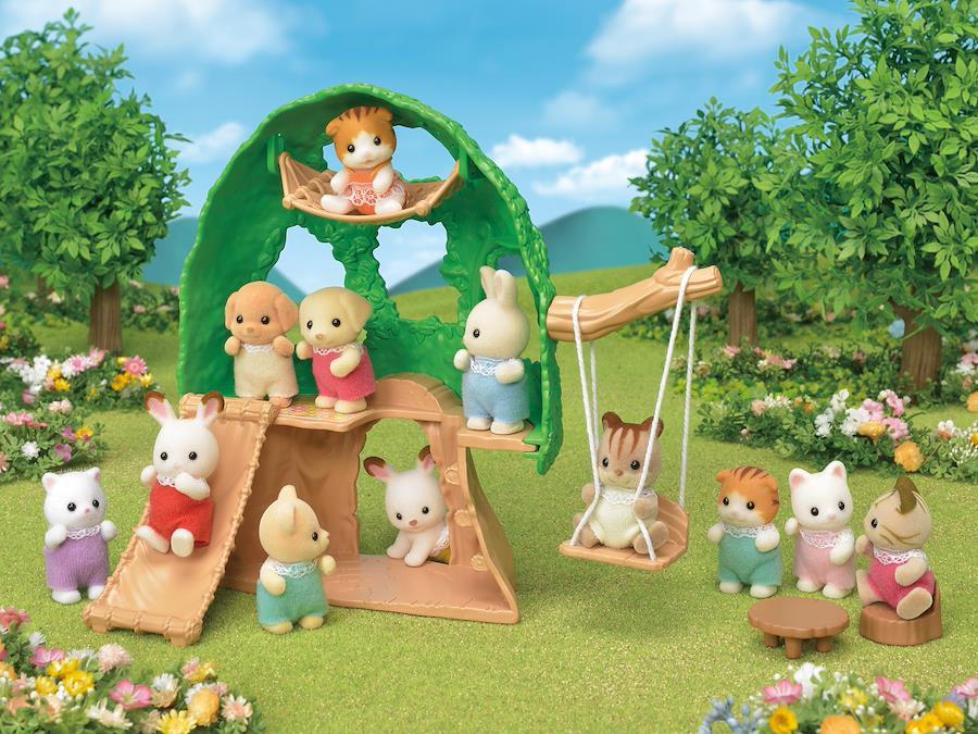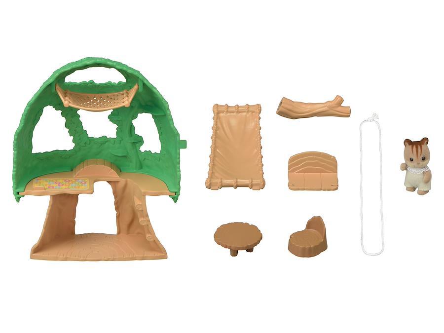 赤ちゃんたちが楽しく遊べる、かわいらしい木のおへやと、くるみリスの赤ちゃんのセットです。ハンモックやすべり台、ブランコなどがあり、赤ちゃんを遊ばせて楽しむことができます。葉っぱの間から外をのぞかせることもできます。別売りの「森のたのしいようちえん」と並べて遊ぶと、園庭のある広々としたようちえんのシーンを作ることができます。[セット内容]葉っぱ、木の幹、枝、ブランコ、ブランコのひも、すべり台、テーブル、イス、くるみリスの赤ちゃん(パーツ総数:9個)(.co.jpより) (C) EPOCH 本体サイズ:14x5x13cm 主な製造国:中国 対象年齢 :3才以上