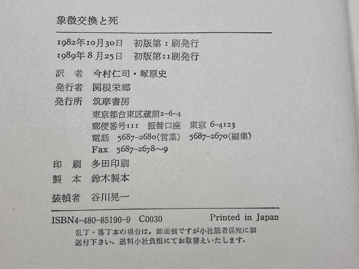 商品名:象徴交換と死 筑摩書房 ジャン ボードリヤール