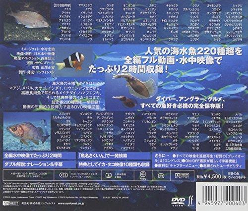 人気の海水魚220種超を全編フル動画・水中映像でたっぷり2時間収録! ダイバー、アングラー、グルメ、すべての魚好き必携の完全保存版! 海水魚の王様マダイをはじめ、馴染みの深いマアジ、メバル、カサゴ、釣りで人気のイシダイ、ロウニンアジから、高級食用魚で知られるメイチダイ、ハマフエフキ、観賞魚で有名なチョウチョウウオ、クマノミ、ユニークな生態で見る者を引きつけるハナタツ、マンボウ、キタマクラまで、選りすぐりの220種超を2時間一挙収録。普段見ることのできないメバルの立ち泳ぎやヒレを使ったオニオコゼの歩行シーンなど貴重なシーンも満載! ナレーションと字幕のダブル解説で、魚の基本情報・生態的特徴を解説。さらに特典として、釣り人にも人気の代表的なイカとタコ類を収録! 海水魚の魅力を存分にお楽しみ頂けるボリューム満点の画期的な完全保存版です! 映像はDVD『プラネット・イン・ブルー』でも高い評価を得た日本水中映像が全編担当。 【本編】 アイゴ/アイナメ/アオブダイ/アオヤガラ/アカエイ/アカカマス/アカハタ/アナハゼ/アミメハギ/アヤメカサゴ/イサキ/イザリウオ/イシガキダイ/イシダイ/イソギンポ/イソマグロ/イトヒキアジ/イトフエフキ/イラ/ウツボ/ウマヅラハギ/ウメイロモドキ/エゾメバル/オオスジイシモチ/オキエソ/オキゴンベ/オキタナゴ/オジサン/オトメベラ/オニオコゼ/オニカサゴ/オニハゼ/オハグロベラ/オビアナハゼ/オビテンスモドキ/オヤビッチャ/カイワリ/カクレクマノミ/カゴカキダイ/カサゴ/カスミアジ/カタクチイワシ/カナド/カミソリウオ/カラストビウオ/カワハギ/カンパチ/カンムリベラ/キシマハナダイ/キタマクラ/キヌバリ/キハッソク/キビナゴ/キビレマツカサ/キュウセン/ギンガメアジ/ギンポ/クエ/クサフグ/クジメ/クチバシカジカ/クマドリ/クマノミ/クロサギ/クロダイ/クロマグロ/コガネキュウセン/コバンザメ/コブダイ/ゴマモンガラ/コロザメ/コンゴウフグ/ゴンズイ/サカタザメ/サクラダイ/サザナミフグ/ササハゼ/シイラ/シマアジ/シマイサキ/シマヒメヤマノカミ/シモフリカジカ/シモフリタナバタウオ/シリキルリスズメダイ/シロギス/シンジュアナゴ/スカシテンジクダイ/スジアラ/スズメダイ/スダレチョウチョウウオ/スマ/セミホウボウ/ソウシハギ/ソラスズメダイ/タカサゴ/タカノハダイ/タカベ/ダルマオコゼ/ダンゴウオ/チカ/チャガラ/チョウチョウウオ/ツノウシノシタ/ツノダシ/ツバメウオ/ツマジロモンガラ/ツムブリ/テングダイ/テングハギモドキ等、人気の海水魚220種超収録。 【特典映像】 ■イカ・タコ 【特長】 ■全編高画質水中映像でたっぷり2時間 ■ダブル解説:ナレーション&字幕 ■「魚名さくいん」で一発検索 ■特典としてイカ・タコ映像10種類も収録