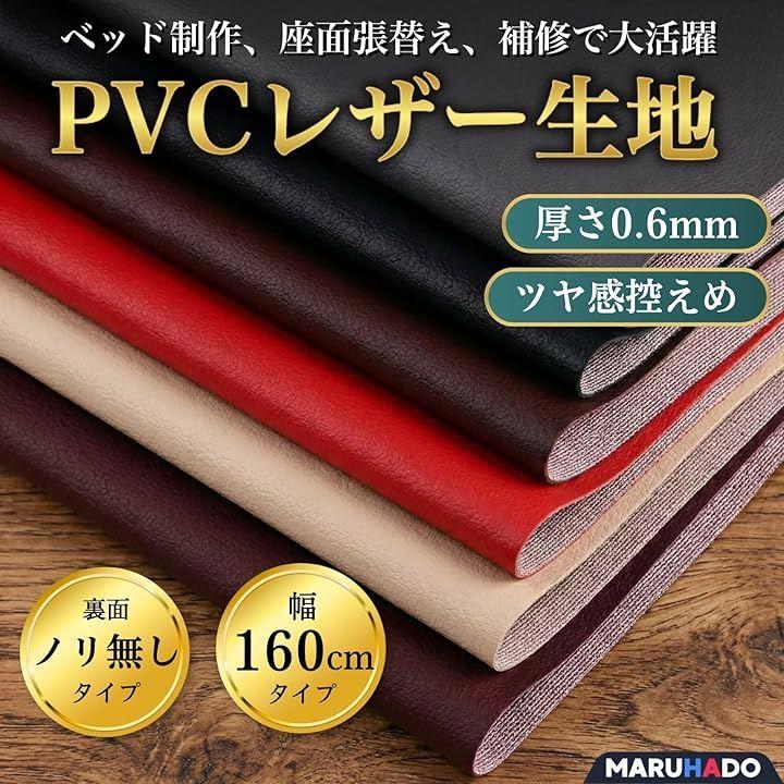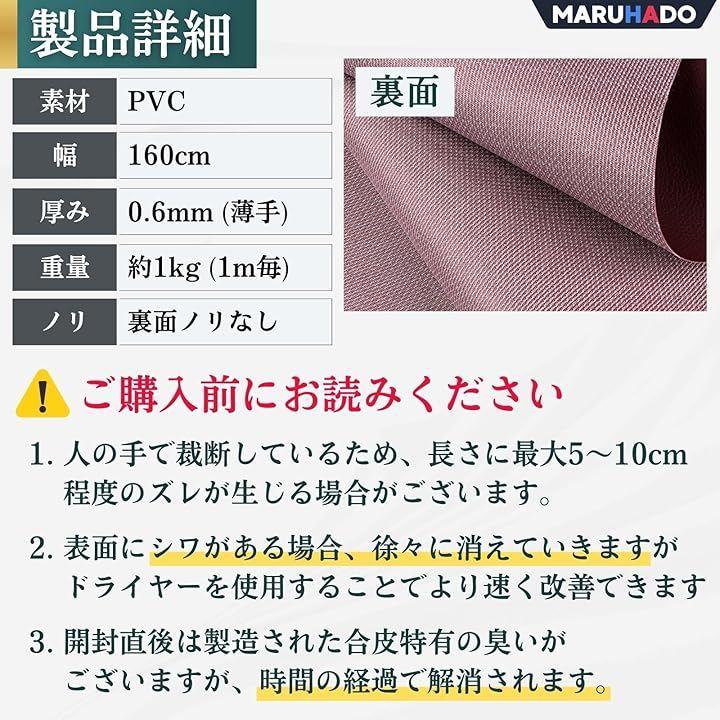 「商品内容」合皮生地(折り畳み梱包)x1 「カラー」黒、焦げ茶、茶色、アイボリー、赤 「材質」PVC(塩化ビニル) 「サイズ」幅約160cm x 長さ2m/3m、厚さ約0.6mm 「注意点」*裏面にシールは付いていないタイプです。