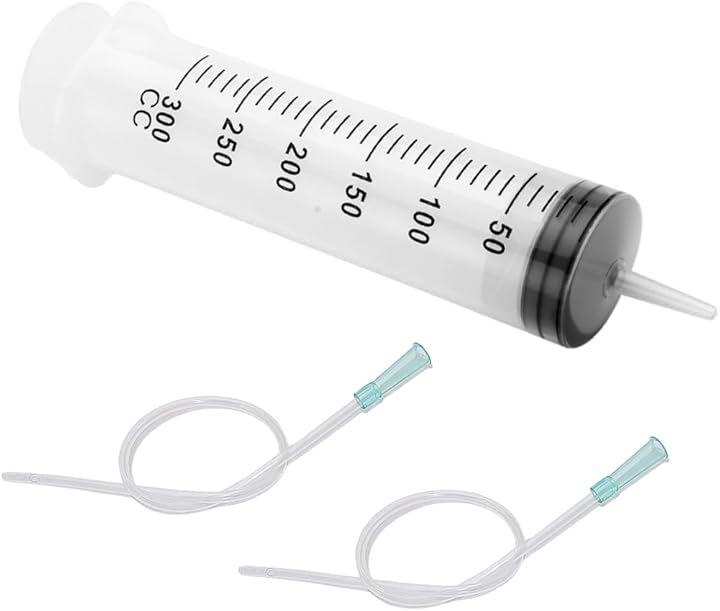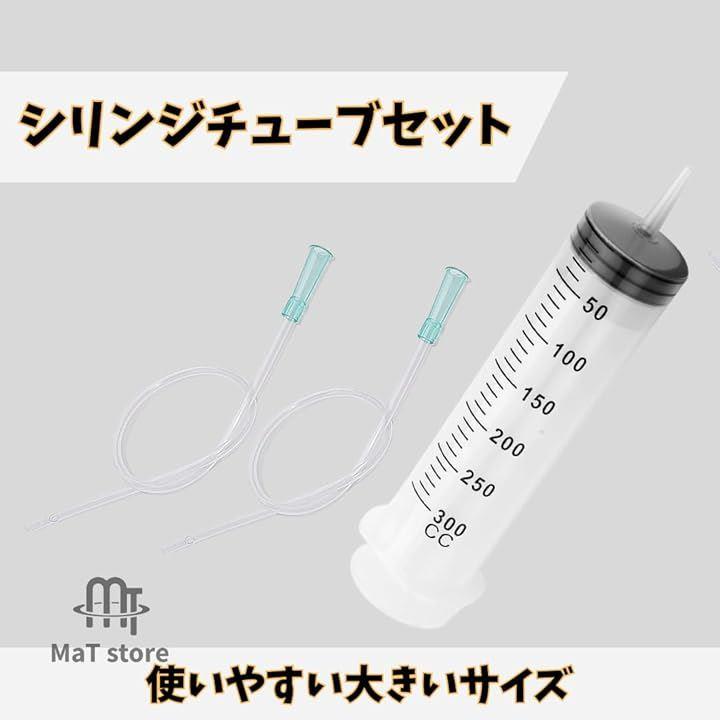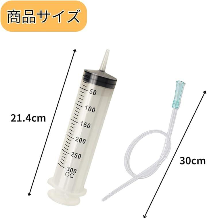 「商品詳細」サイズ:シリンジ 21.4cm、チューブ 30cm、重量:150g、素材:プラスチック、パッケージ内容:シリンジx1本、チューブx2本