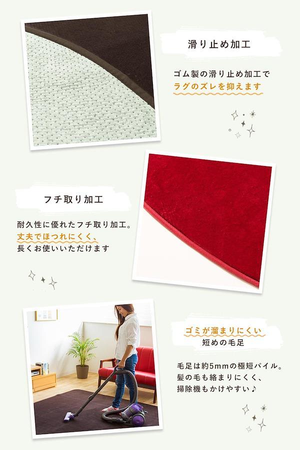 【 安全安心 カーペット 】防ダニ・抗菌・防臭仕様。滑り止めもついてずれにくい ラグ です。フローリング や 畳 など場所を選ばずに使用できます。【 洗える 】毛足は適度な長さなので 掃除 や 洗濯 も簡単です。【 オールシーズン快適 】きめ細かい フランネル 生地ですので 夏 も 冬 も快適に使用できます。ホットカーペット も対応しています。