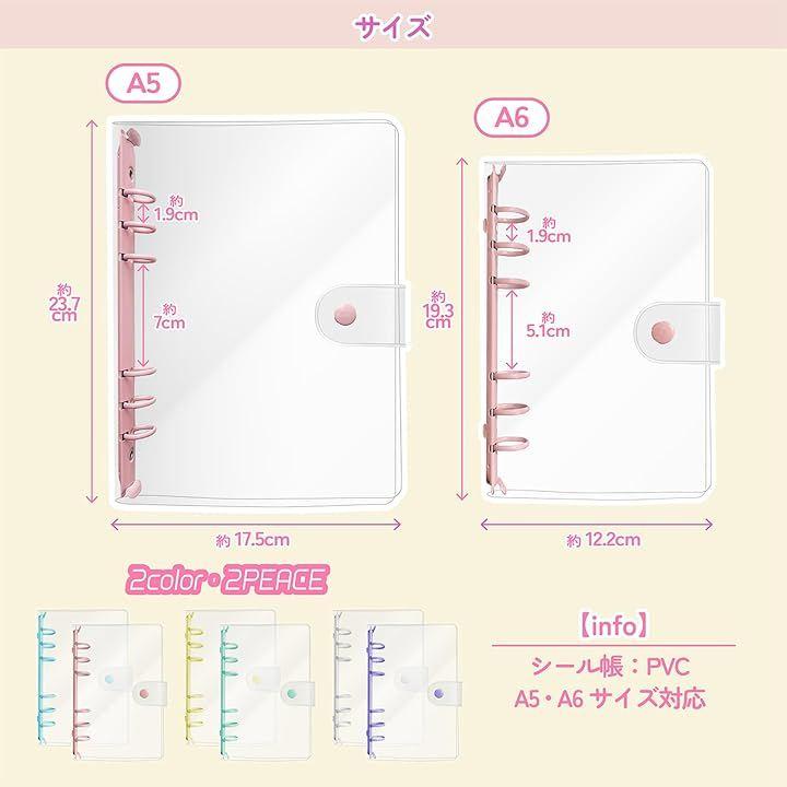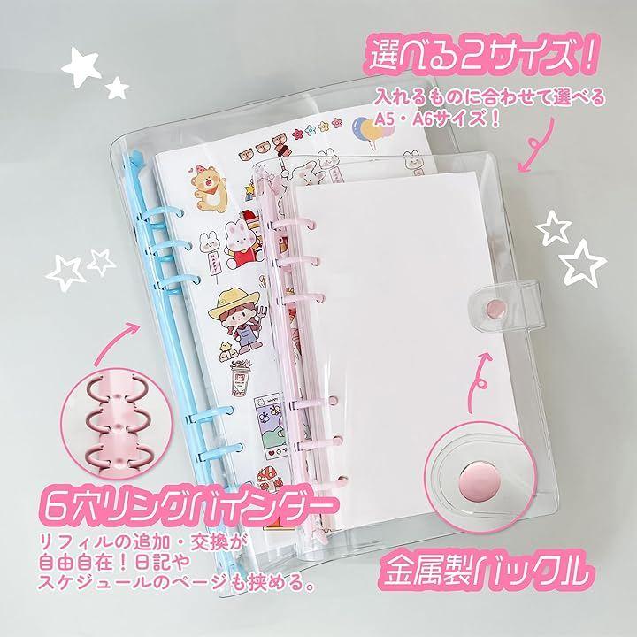 「システム手帳にも使える6穴バインダーカバー」 パステルカラーが目を引く A5・A6サイズの6リング対応PVCバインダー2冊セット(カバーのみ)です。