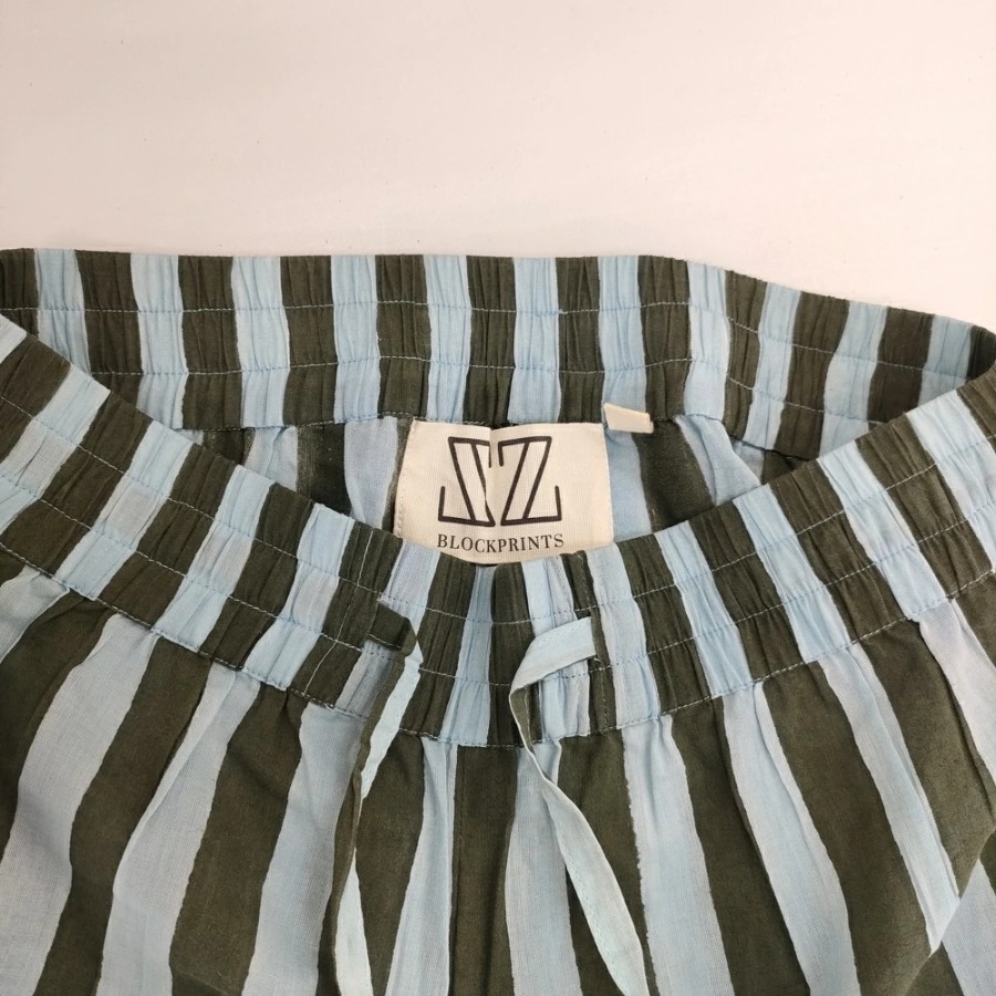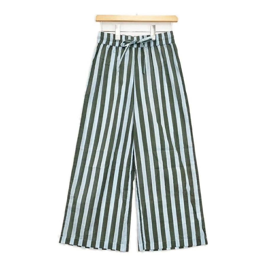 SZ Blockprints New Chic Stripe Summer Drawstring Pants, Retail Price ¥28,600, Wide Easy Pants, Light Blue/Green, Women's, SZ Blockprints [Used] 6-0410S