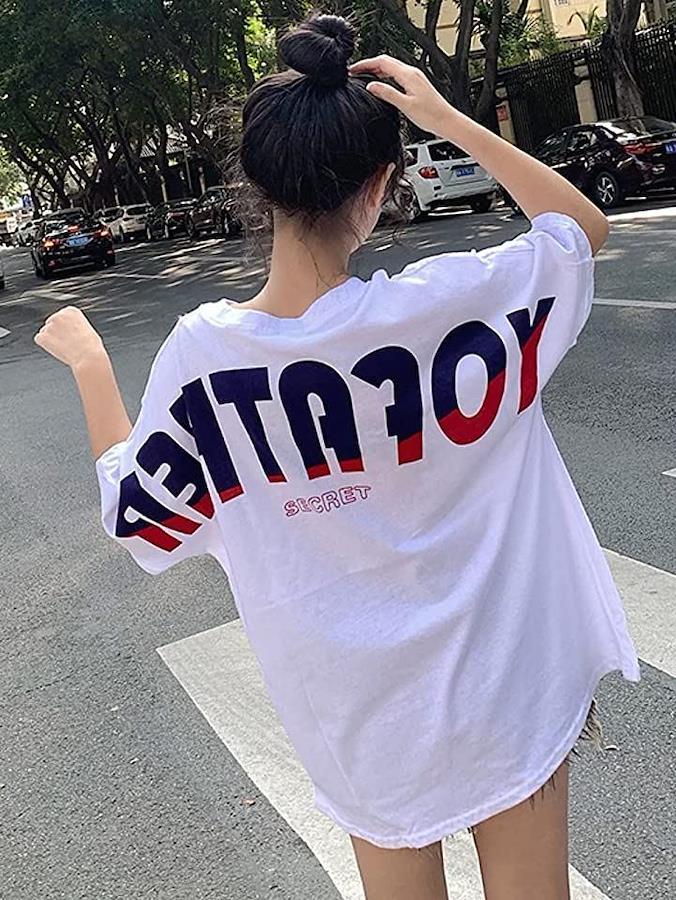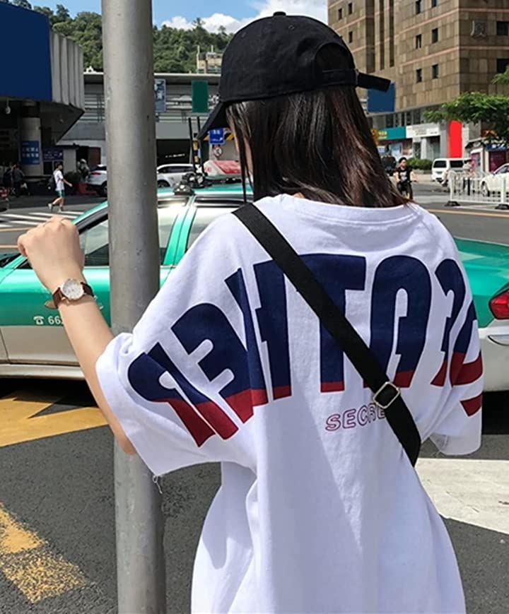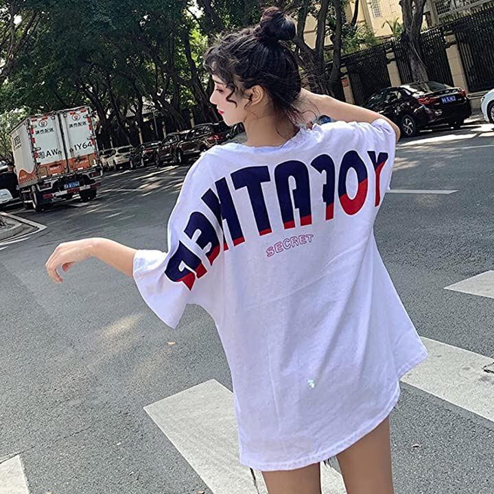 「[ブブオーハナ]Tシャツフレンチスリーブゆったりバックプリントドロップショルダーカジュアルレディース」