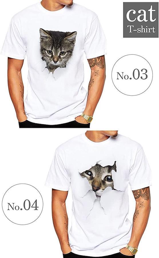 「人気アイテム」オシャレで可愛い猫ちゃん柄のプリントTシャツ
