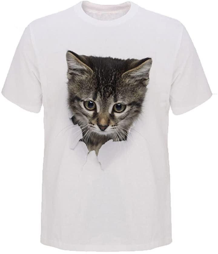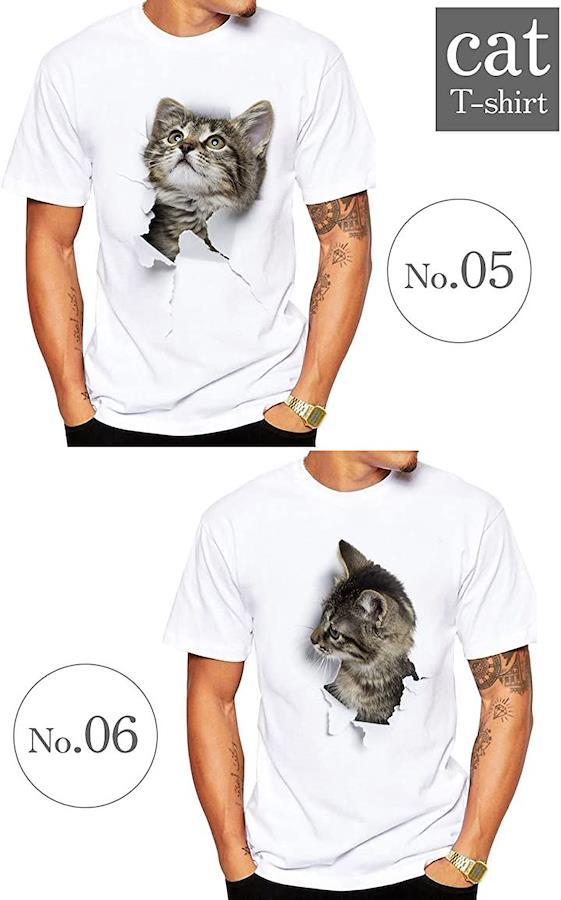 (RONGUI) Tシャツ 猫 おもしろ トリックアート カジュアル シンプル ブラックネコ