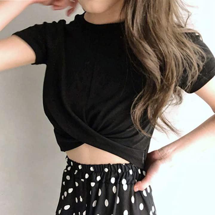 「[ブブオーハナ]Tシャツ半袖ショート丈ショートTシャツへそ出し無地トップス短めレディース」