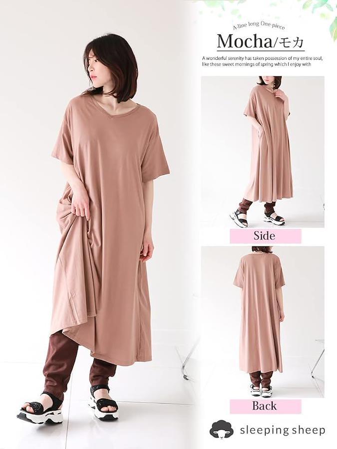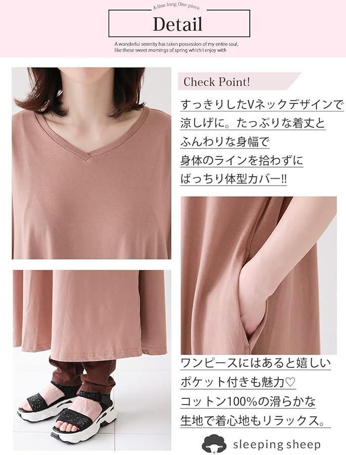 ワンピースにはあると嬉しいポケット付きも魅力で、ちょっとそこまでも着ていけるルームウェアにもお勧めです。