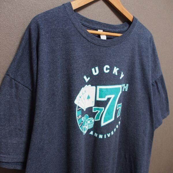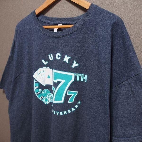 T026 JERZEES DRI-POWER Jerseys Lucky 7 Casino Logo T-Shirt, Size 3XL, Navy, Used, Imported from the USA