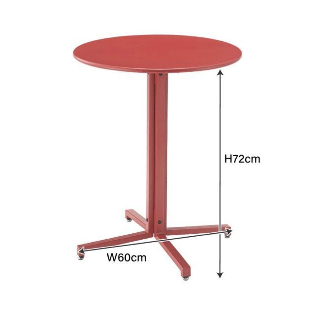 ■優雅なアフタヌーンティーから、友人と飲み明かす夜、そしてオフィスシーンまで。コンパクトなサイズ感で場所を選ばず、あらゆるシーンで活躍するスチールテーブル。■天板は直径60cmと小さめ。スペースが限られた場所にも置くことができるので、1〜2人での使用にオススメです。■表面の塗装はマットな光沢を放ち、ラフで親しみやすい印象を与えてくれます。無駄なく洗練されたデザインなので、オブジェのようにお部屋のアクセントにすることもできます。■天板はスチール製なので、汚れたり、水をこぼしたりしても、シミになる心配がありません。サッと拭きとるだけで簡単にお手入れできます。またサビに強い粉体塗装を施しているため、綺麗な状態を長く維持してお使いいただけます。■脚部の接地面にはアジャスターが付いているため、微細な高さ調整が可能となり、ガタツキを最小限に抑えることができます。安定したテーブルで安心して食事や作業を行っていただくことが可能です。