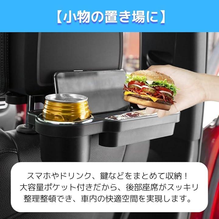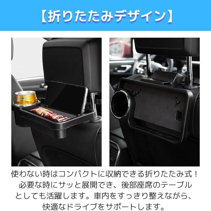 後部座席のテーブルとしても使え、旅行や日常の車内空間を快適に保ちます。