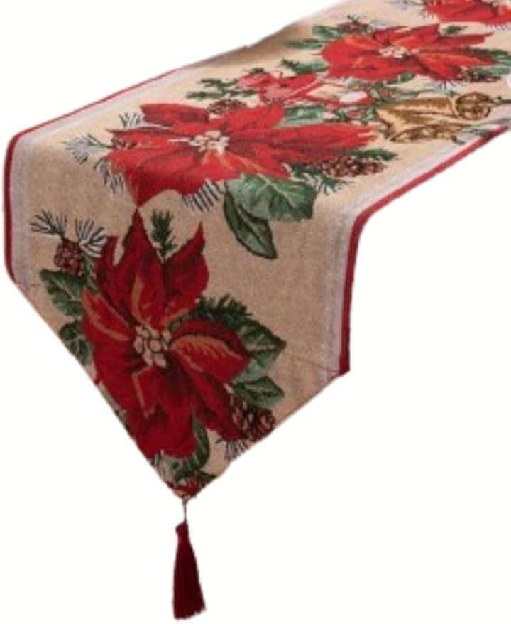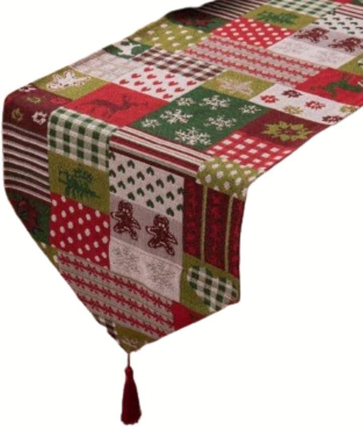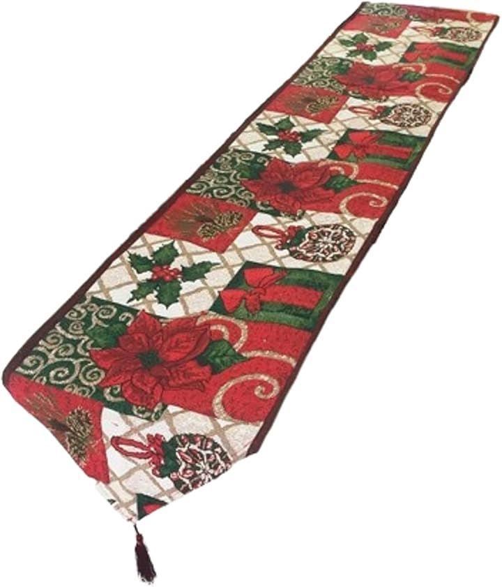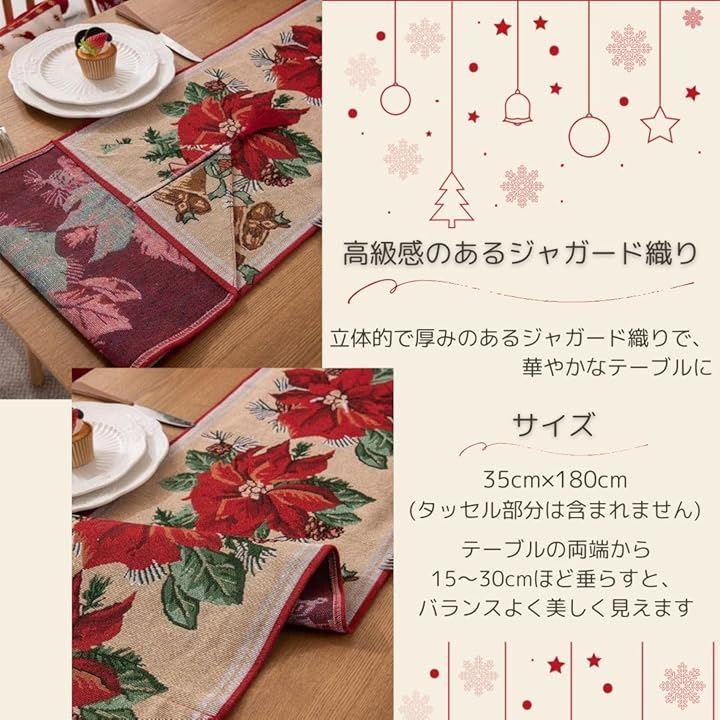 クリスマスを代表するモチーフのジャガード織テーブルランナー(テーブルセンター)。