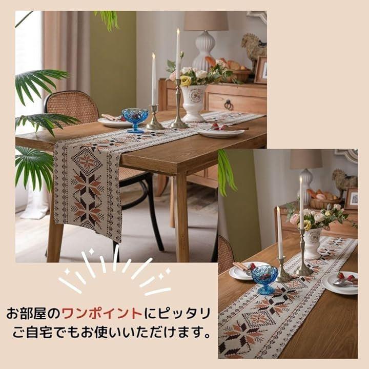 「多彩な使い道」 テーブルランナーとしてはもちろん、インテリアとしても幅広く活用できます。