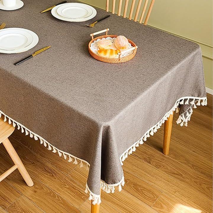 シンプルなデザインで使いやすい北欧風のフリンジ付きテーブルクロス。