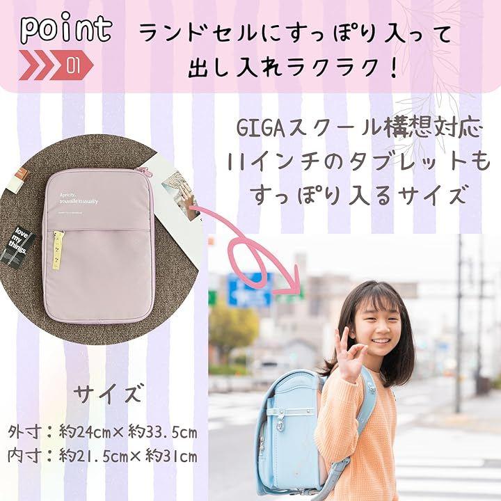 当商品は11インチ対応(外寸:約24cmx約33.5cm、内寸:約21.5cmx約31cm)で、ランドセルやスクールバッグに無理なく入る安心サイズです。
