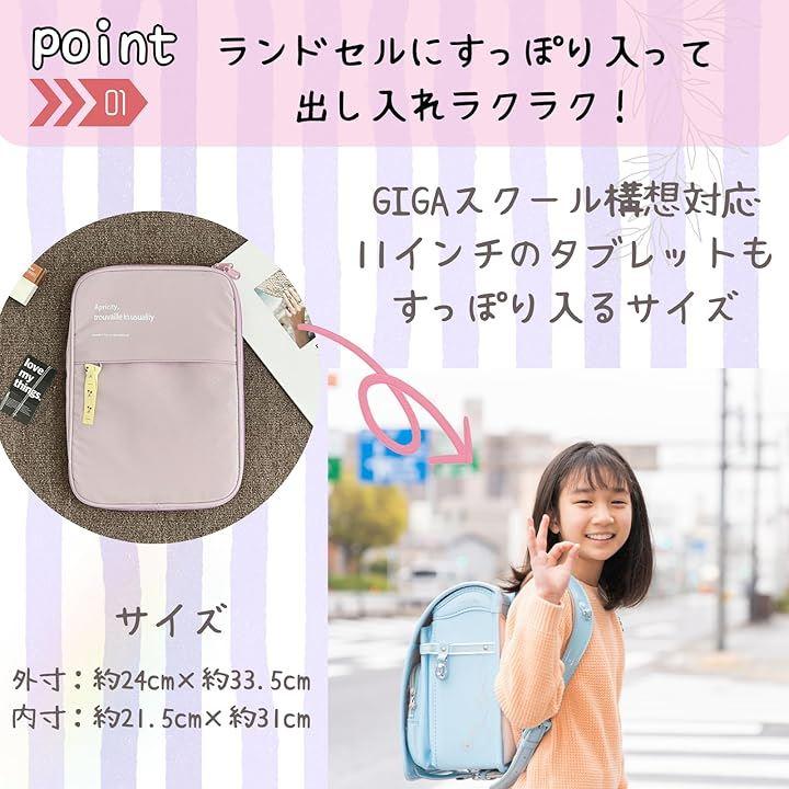 当商品は11インチ対応 外寸:約24cmx約33.5cm 内寸:約21.5cmx約31cm)で、ランドセルやスクールバッグに無理なく入る安心サイズ。
